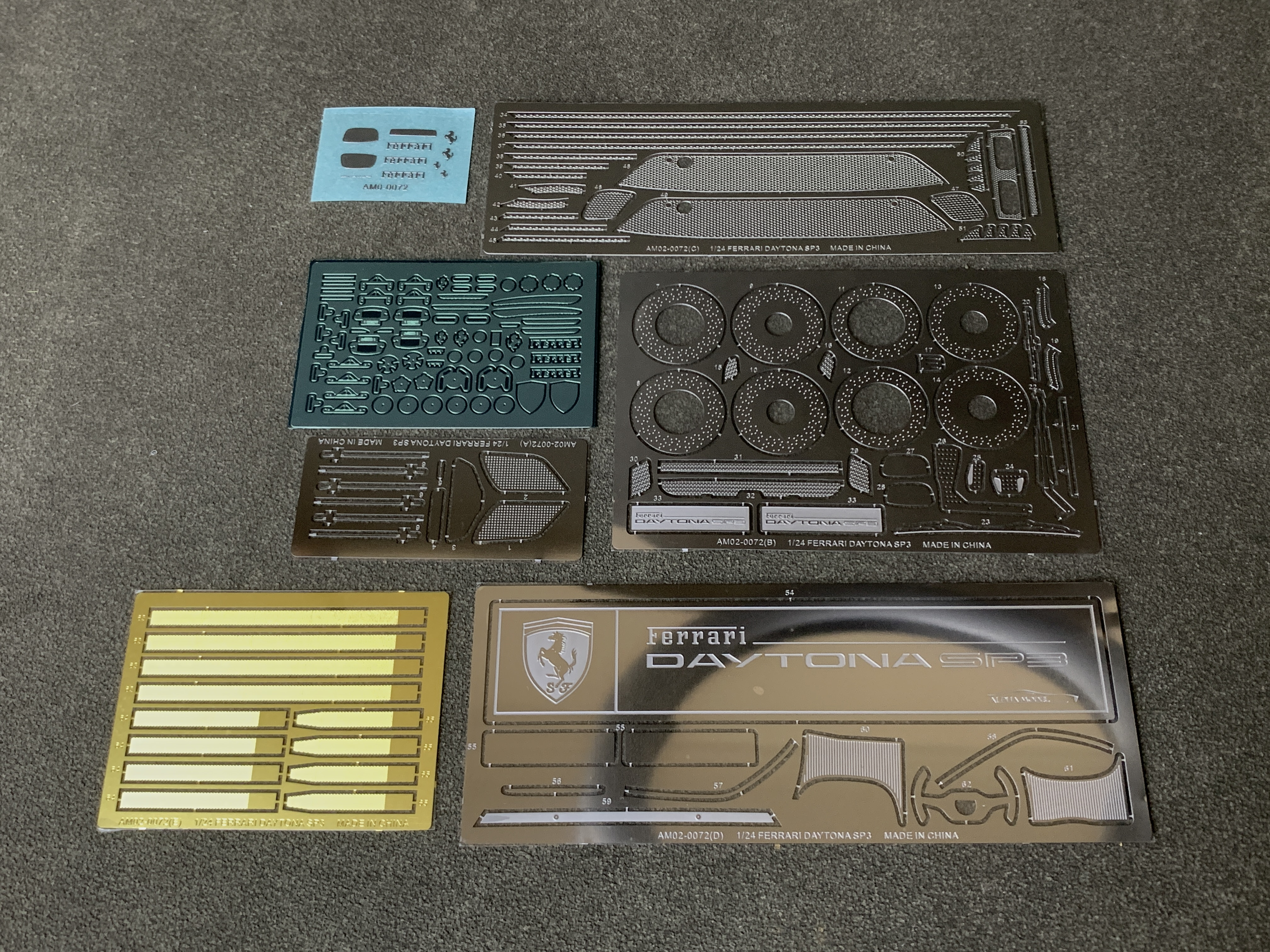 During the interior assembly of the 1/24 scale Ferrari Daytona SP3 – AM02-0072, careful planning and a clean building style will greatly enhance the final presentation.