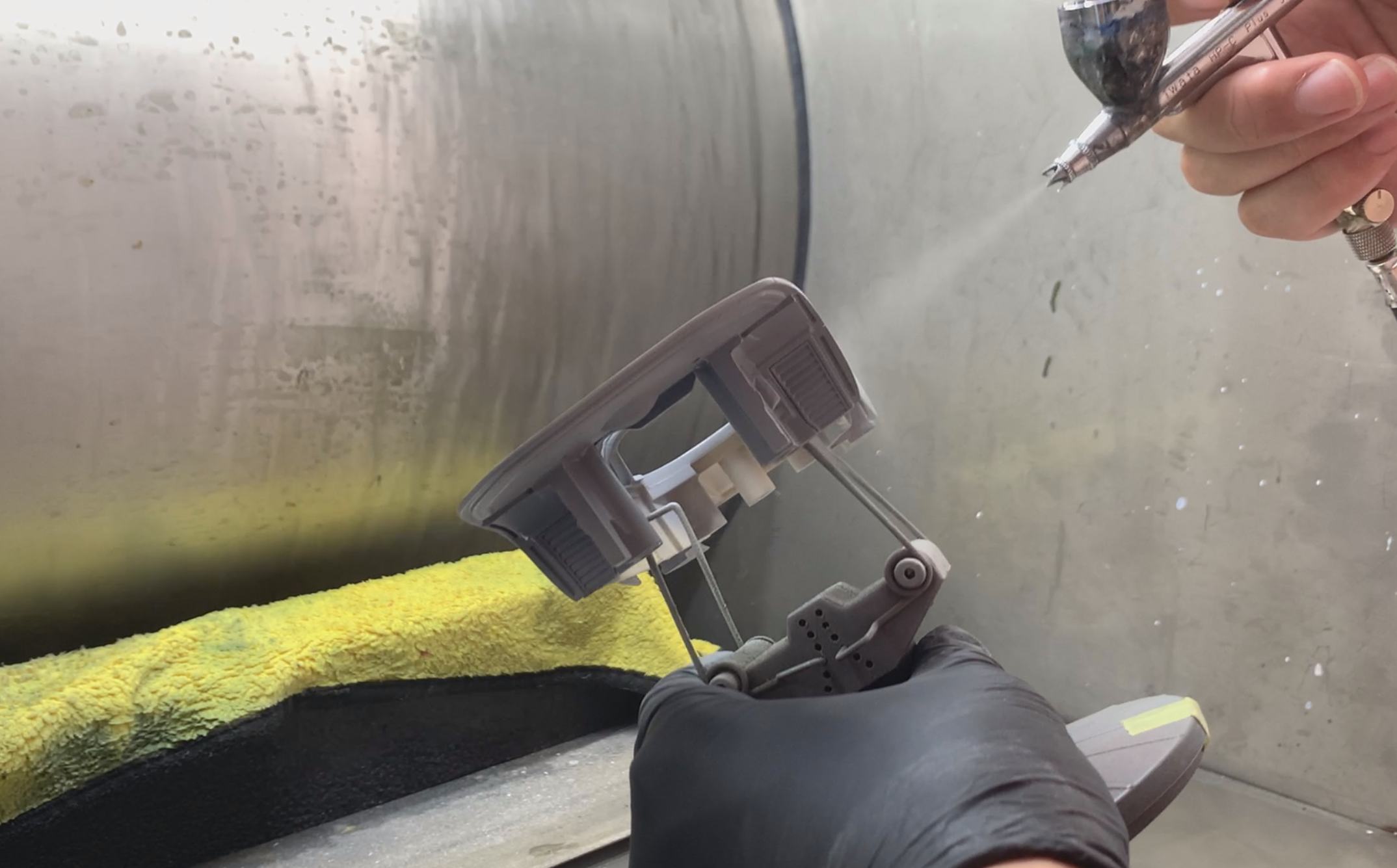 A semi-gloss or gloss black finish is recommended to represent metal and to create a subtle contrast against the main disc surface.