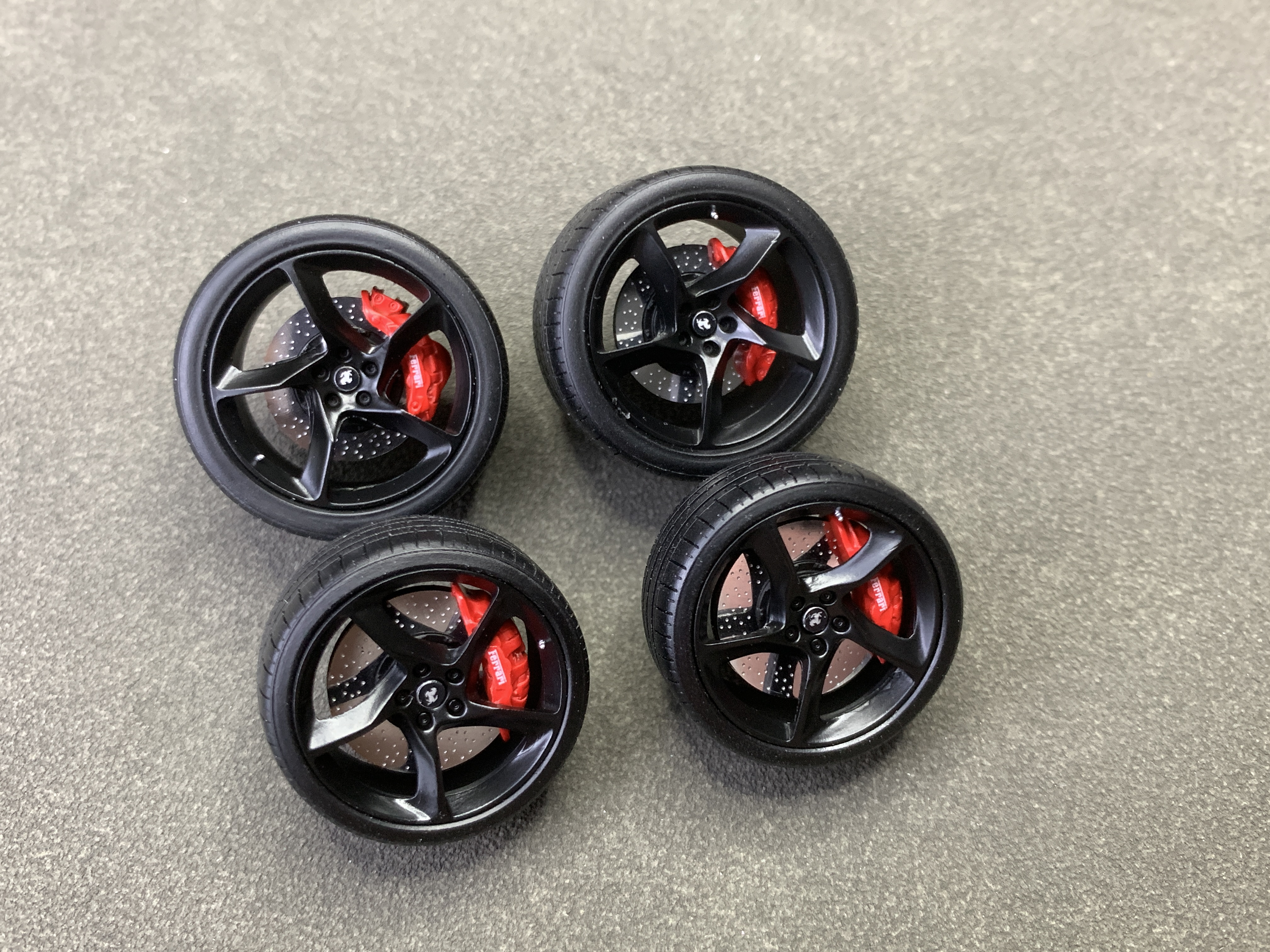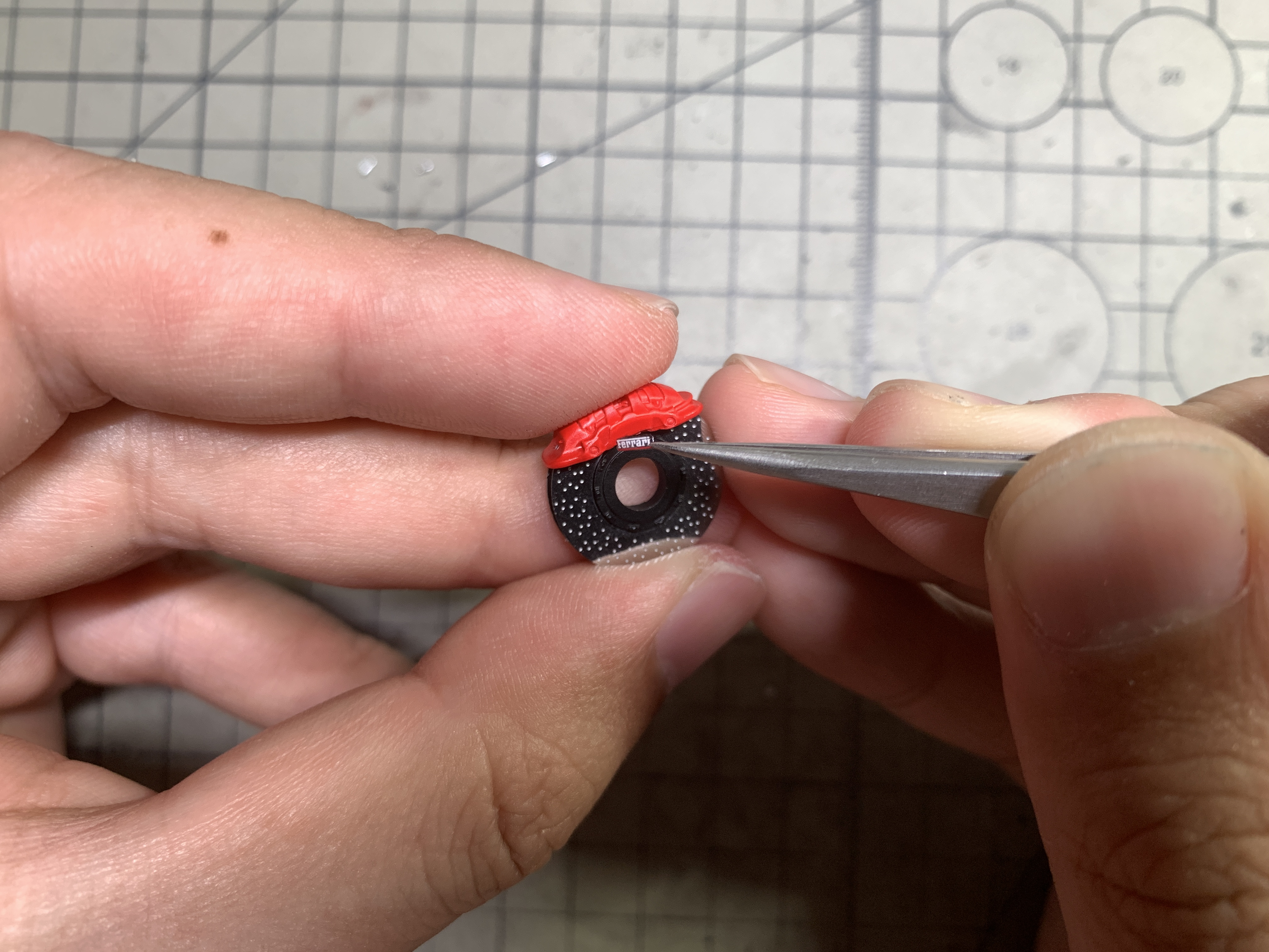 The brake disc lock at the center of the rotor is both a visual focal point and a structurally important detail on this 1/24 scale kit.